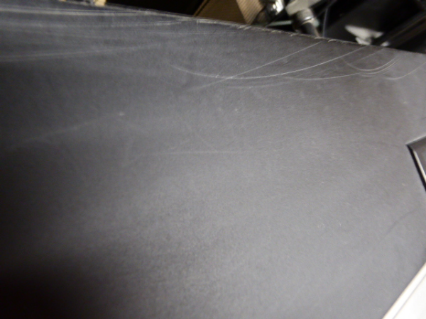 This unit has a few light surface scratches on the top rear of the keyboard, and some scuffs to the wooden end cheeks. (pictured)